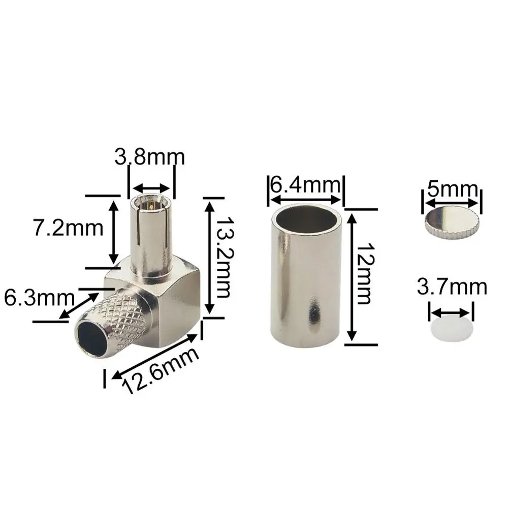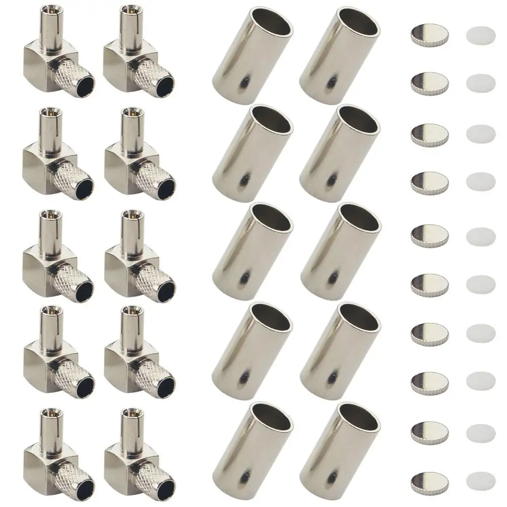10 Pieces TS9 Male Crimp Right Angle RF Coaxial Connector for RG58 LMR195 Cable 50ohm