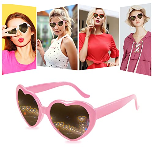 2 pieces heart effect diffraction glasses, 3D heart sunglasses with heart effects, special effect heart-shaped sunglasses, fashion rave glasses for men, women, festival, party Outdoor Music, Bar...
