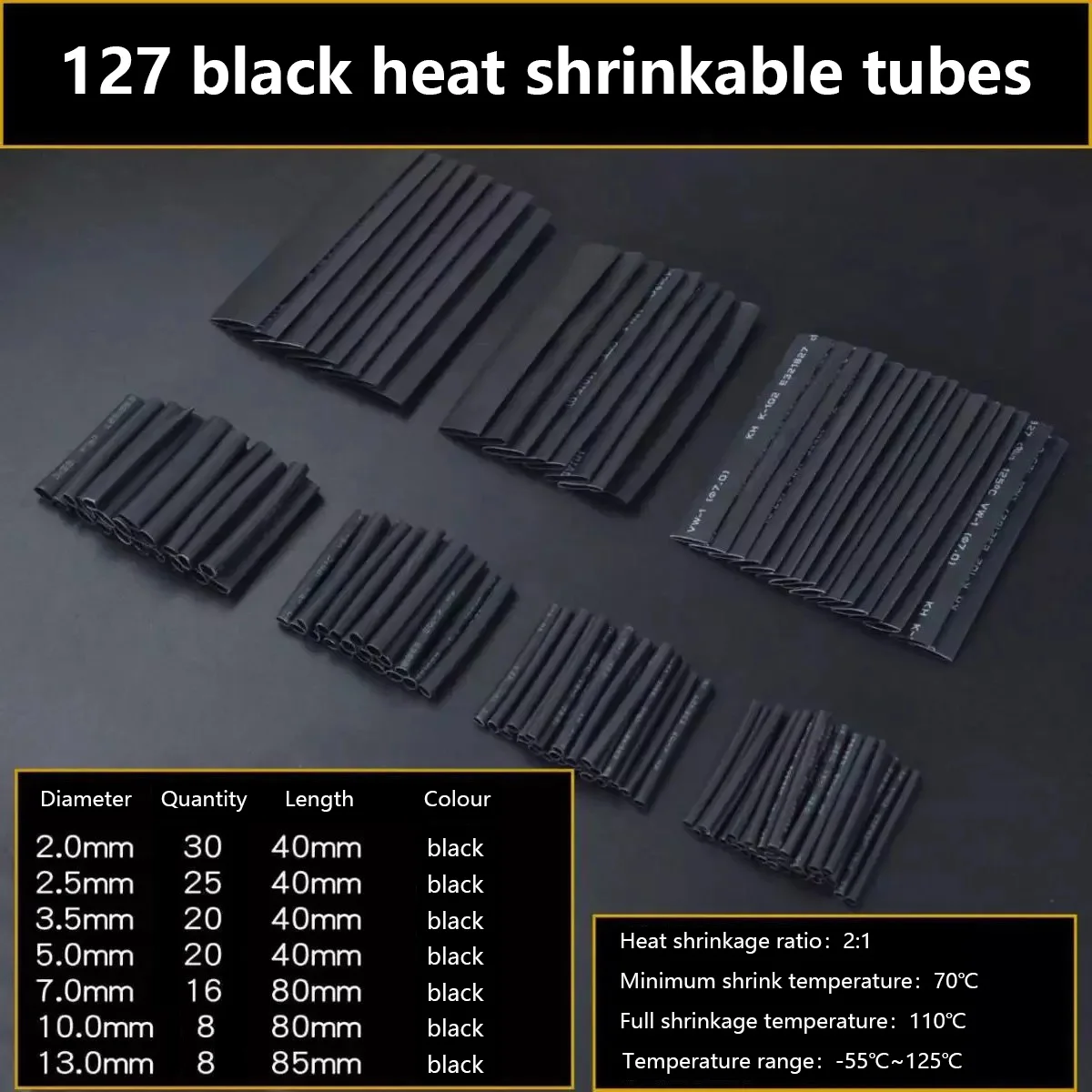 127 Pieces of Heat-shrinkable Insulation Sleeve Classification Kit Electrical Connection Wire Waterproof Heat-shrinkable Tube