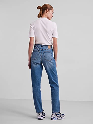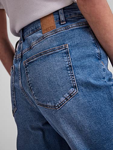 PIECES Pcluna Straight HW Mb57 Noos BC Jeans, Blu Denim Medio, 32 W/30 L Donna