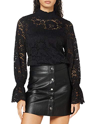 PIECES Pcraita LS Lace Top Camicia da Donna, Nero, M