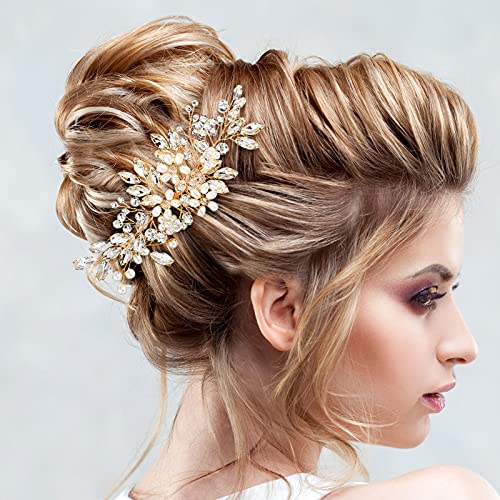 5 Pieces Pearl Wedding Hair Side Comb Crystal Bride Wedding Hair Comb U-shaped Bride Wedding Hair Pins Rhinestone Hair Accessories Pearl Flower Hair Comb for Women and Girls(Oro)