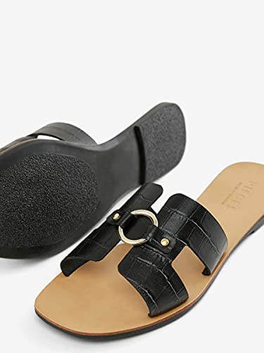 Sandali piatti in pelle con un anello decorativo dorato sulla cinghia