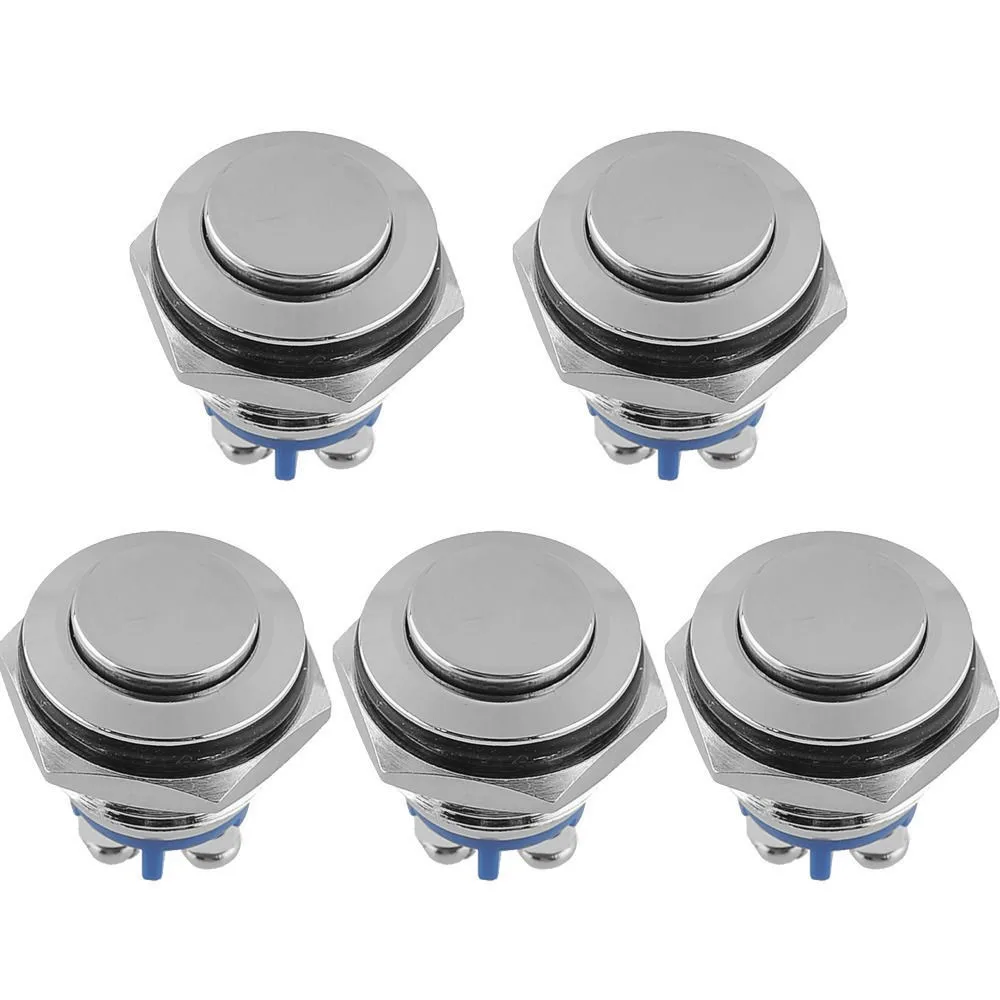 5 pieces 16mm high flat head waterproof metal push button anti vandal electric switch+IP65 waterproof+CE RoHS