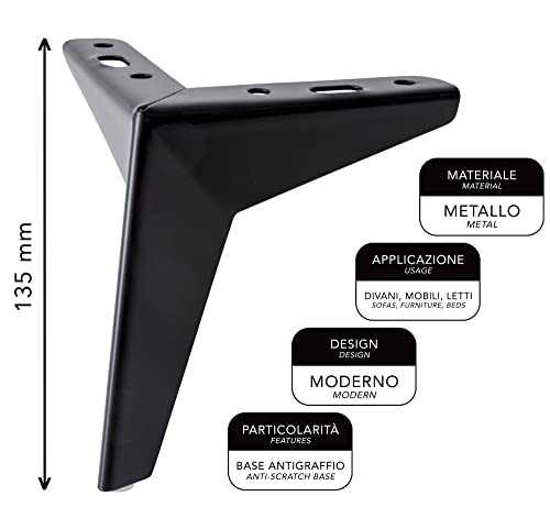 IPEA 4X Piedi per Divani e Mobili modello JAZZ - Set di 4 Piedini in Ferro - Design Moderno ed Elegante Colore Nero Opaco, Altezza 135 mm