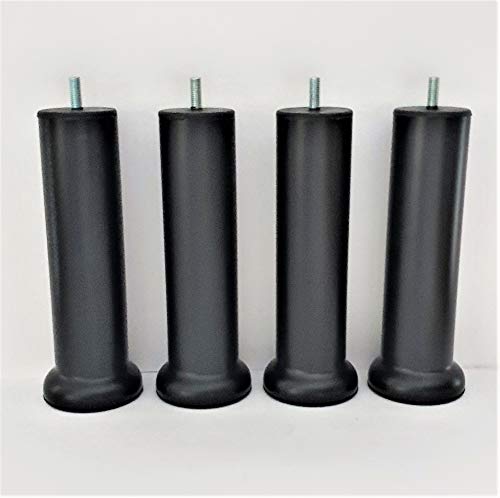 4 piedi per letto, rete imbottita in metallo nero opaco, 20 cm, con base, viti filettate M8 + dadi a griffe