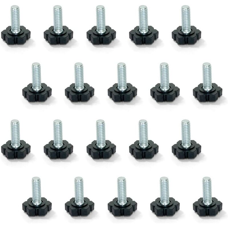 Set di 20 piedini di livellamento in acciaio per mobili (tavoli, comò, sedie, scrivanie) Regolazione in altezza del mobile grazie all'asta filettata M6x20 mm Base esagonale in plastica nera Altezza cilindro H 25 mm Richiede il montaggio un dado M6 (non incluso)