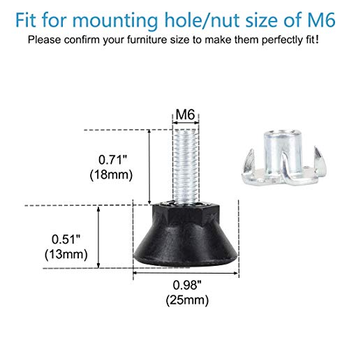 M6 x 18 x 25 mm - Piedini di livellamento per mobili, per prevenire graffi, livelli, regolabili con dadi a T per gambe del tavolo del divano, 20 pezzi