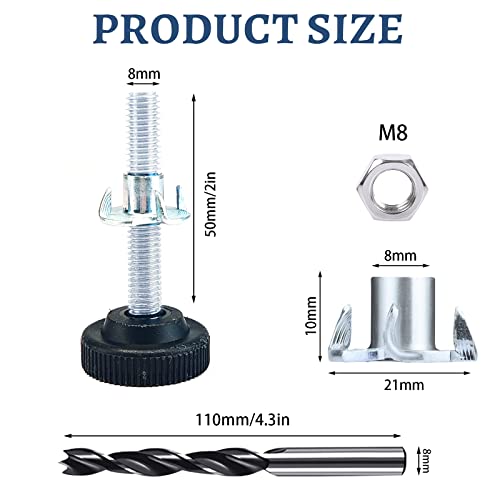 【Confezione da 8 pezzi】 M8 x 50 x 30 mm/M8 x 1,97in x 1,18in (diametro della filettatura * lunghezza della filettatura * diametro della base). Forniamo 8 Piedini di Livellamento Regolabili, 8 dadi di fissaggio, 8 controdadi e 1 punta da trapano in metallo (8 mm). In questo modo è possibile portare a termine il lavoro con facilità.