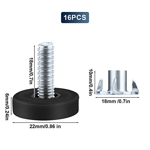 AIEX 6,35mm Piedini di Livellamento Regolabili, 16 Pezzi Livellatori per Mobili Piedini di Livellamento con Dadi a t, Piedini di Livellamento per Mobili per Gambe di Mobili Armadio (M6)