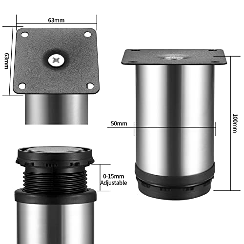 4 Piedini per Mobili in Acciaio Inox, Gambe da Tavolo in Metallo, Piedi per Armadi Regolabili in Altezza da 10mm per Divani Letto, Armadi, Piani di Lavoro, Tavoli - Ø50mm, Altezza 100mm