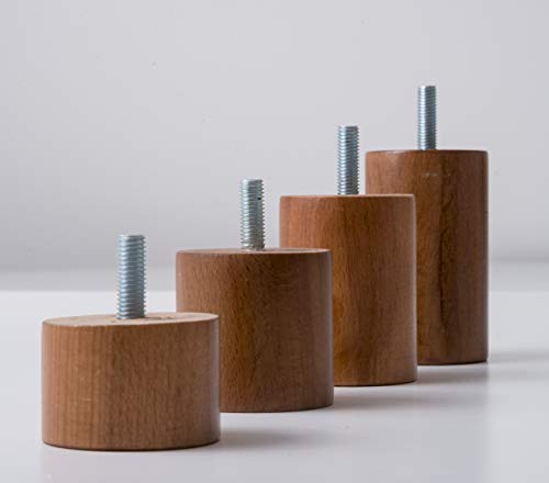 CONTENUTO: Kit da 4 gambe in legno per divani, mobili, armadi e poltrone in legno color Noce con forma cilindrica alte 10 cm. Prodotto 100% Made in Italy.