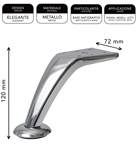 CONTENUTO: Kit da 4 piedi in metallo per divani, mobili e poltrone colore Cromato.