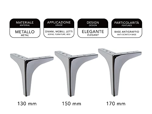 IPEA 4X Piedini per Mobili e Divani Modello META - Set di 4 Gambe in Ferro - Piedi dal Design Elegante per Poltrone e Armadi - Colore Cromato - Altezza 130 mm