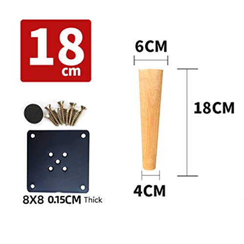 Piedini per Mobili Gambe per Mobili in Legno Cono Dritto Piedini per Mobili Rovere Conico Gambe Di Supporto Piedi del Divano Tavolo Armadio Guardaroba,Colore del Legno 4 Pezzi (18cm)