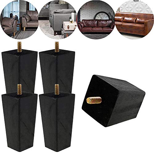Piedini per mobili in legno nero, in legno massiccio, 6 cm/10 cm/15 cm, piedini per mobili in legno massiccio, con piastre di montaggio e viti per divano, letto, divano, sedia da ufficio (10 cm)