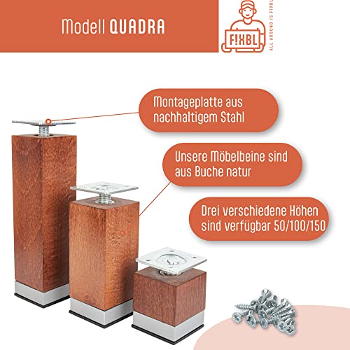 F!XBL Piedini per mobili in legno, regolabili, altezza 5 cm, con piastra di fissaggio in acciaio inox, modello QUADRA, set da 4 pezzi