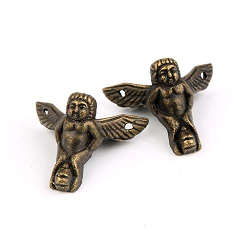 HLLR Piedini per mobili 4 Pezzi Bronzo Antico Angelo Scatola Regalo Custodia in Legno Protezione angolare Decorazione per mobili