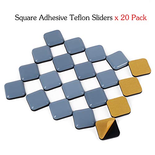 20 piedini per mobili, in teflon autoadesivi per sedia e gambe in PTFE, per mobili facili da spostare (quadrato)
