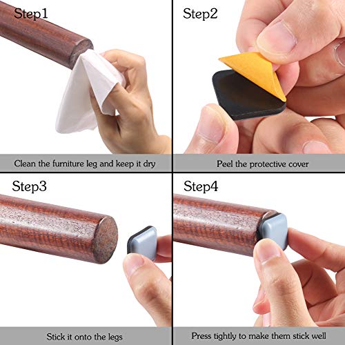 Facile da usare: grazie alle guide autoadesive, si può semplicemente attaccare sul fondo delle gambe dei mobili, quindi premere saldamente. Facile da installare e rimuovere. Nessun attrezzo necessario. Si prega di pulire e asciugare le gambe dei mobili prima di incollare i cursori.
