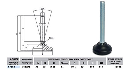 PIEDINO DI LIVELLAMENTO 10282 CON BASE IN PLASTICA, STELO ZINCATO SNODATO 30° M16 x 75