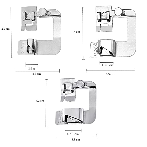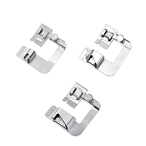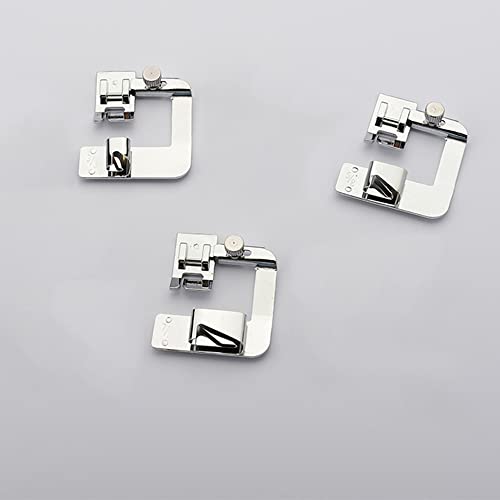 Piedino per Macchina da Cucire, 3 Pezzi Piedino per Orlo Arrotolato in Lega di Zinco Argento, Piedino Orlatore, Regolabile, Piedino per Sbieco per Macchine da Cucire Domestiche(3/8, 5/8, 7/8 Pollici)