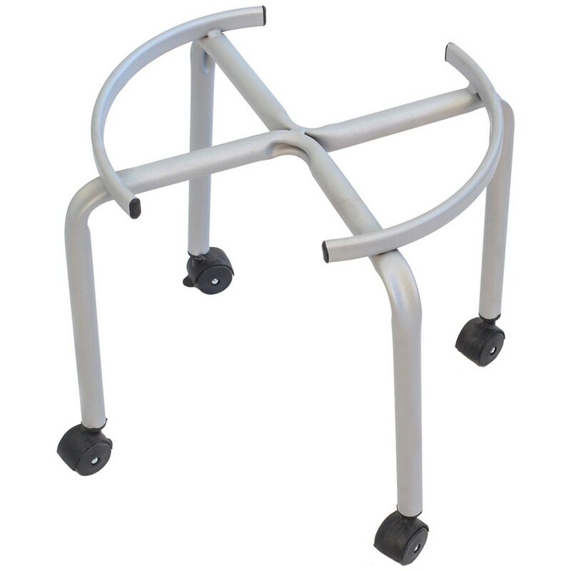In acciaio verniciato a forno con polveri epossidiche. idoneo a sopportare carico statico posizionato su superfici piane pavimentate. colore grigio alluminio. diametro 38 cm.h.36 - per lt. 50 con ruote