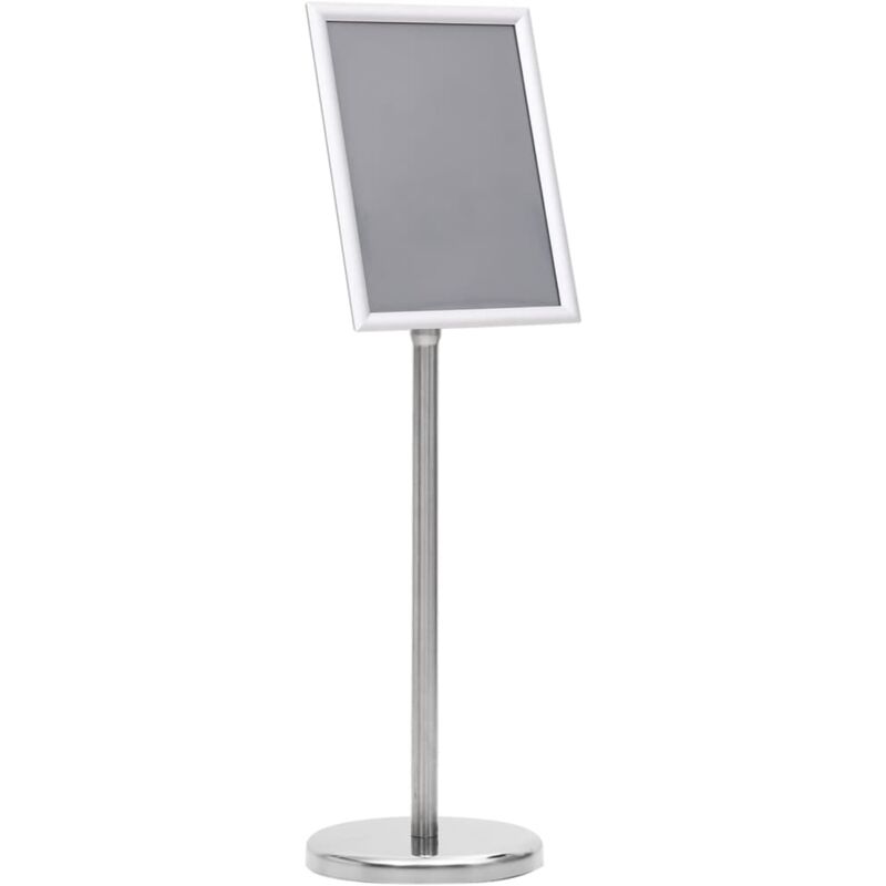 Se state cercando un espositore per poster per il vostro ristorante o qualsiasi evento pubblico, o un supporto per note e presentazioni per ingressi, uffici e vetrine, non cercate oltre! Questo piedistallo il prodotto perfetto per tutte le vostre attivit pubblicitarie e promozionali! Questo supporto per poster completamente regolabile per soddisfare le diverse esigenze di visualizzazione. Costruito con un telaio in lega di alluminio resistente e leggero, il piedistallo pu contenere 1 elemento grafico in formato A4 standard. Il suo pannello pu essere ruotato di qualsiasi angolazione per la massima flessibilit. Il film in PVC trasparente protegge l'elemento grafico da polvere e impronte digitali e fa in modo che il poster venga sempre mostrato al meglio. Il sistema a scatto garantisce una rapida installazione di qualsiasi disegno. Grazie alle dimensioni ridotte questo prodotto occupa poco spazio ed facile da trasportare. Questo supporto facile da montare e mantenere. Colore: Argento