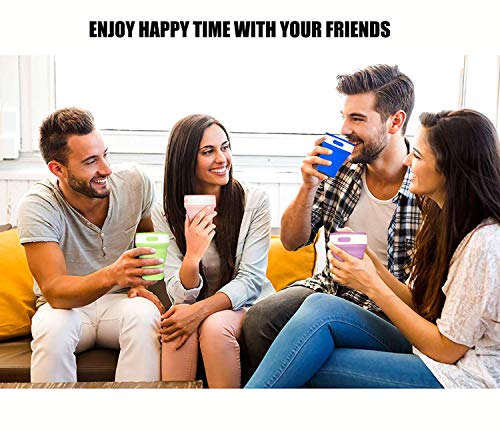Materiali sicuri - - questo tazza da caffè pieghevole è non tossico e non dopo gusto o odore. e 'realizzato in 100% silicone per uso alimentare e PP. Priva di BPA e ftalati, non si vive una vasta gamma di temperature da -50 ℃ a 200 ℃.Può essere utilizzato in microonde e maniche frigo. con gomma coperchi, foro tappi sicuro e calore, e un design elegante. Il riutilizzo della tazza da caffè è adatto per bambini e tutte le persone every-day-use.