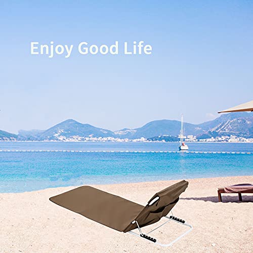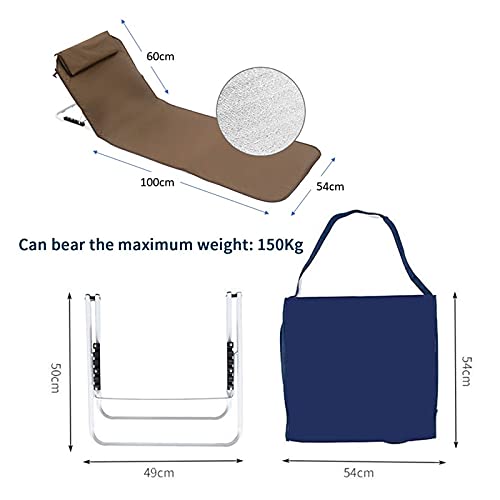 Pieghevole senza gambe Sedia a Sdraio, Portatile Pieghevole Sdraio da spiaggia, Stuoia Della Spiaggia, con Schienale Regolabile Poggiatesta di Immagazzinaggio Tasca Imbottita Brown-Add Aluminum foil