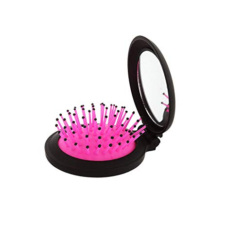Pieghevole Viaggio Hairbrush per Capelli con Specchio Pennello per Capelli compatti Piegatura Rotonda Pettine Massaggio Spazzola Rosa