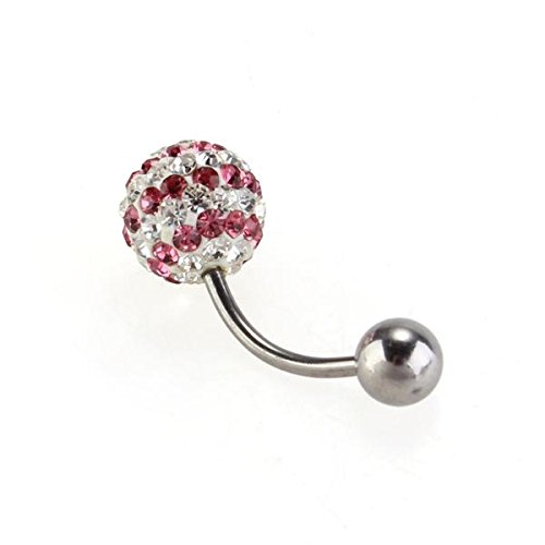 Piercing ombelico rotondo in acciaio con strass bianco rosa