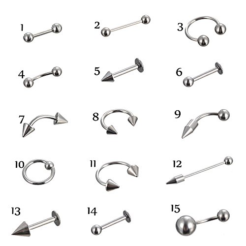 Set piercing 30 pezzi in acciaio chirurgico da naso e lingua.