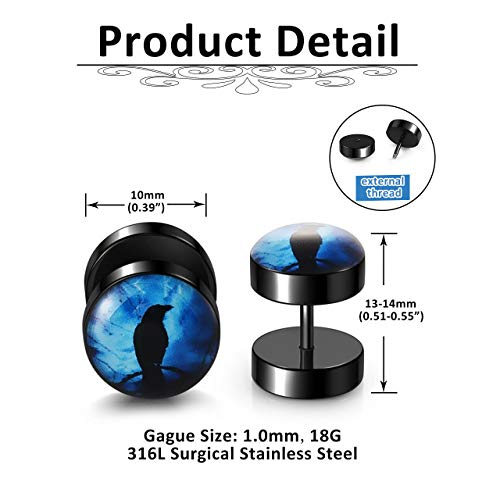 Misure: calibro: 18 g (1 mm), lunghezza barra: 6 mm, lunghezza totale orecchino: 13 mm, dimensioni falso calibro: 00 g (10 mm), ottimo processo di elettroplaccatura, peso leggero e durevole conservazione del colore.