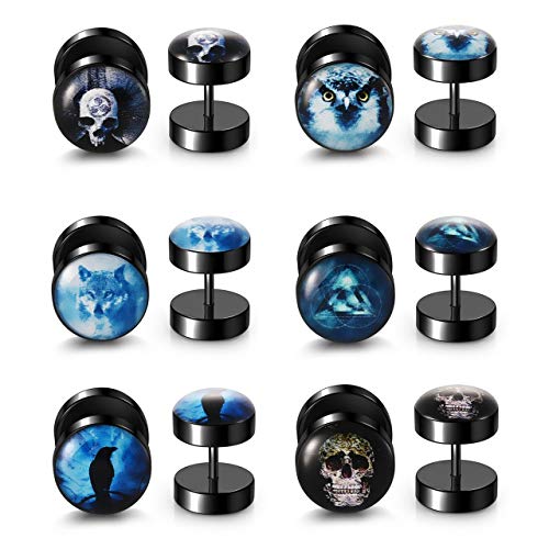 Confezione valore: 6 paia (12 pezzi) di 6 stili in acciaio inox finto design con lupo / gufo / teschio La scatola molto sottile li rende molto belli come regalo.