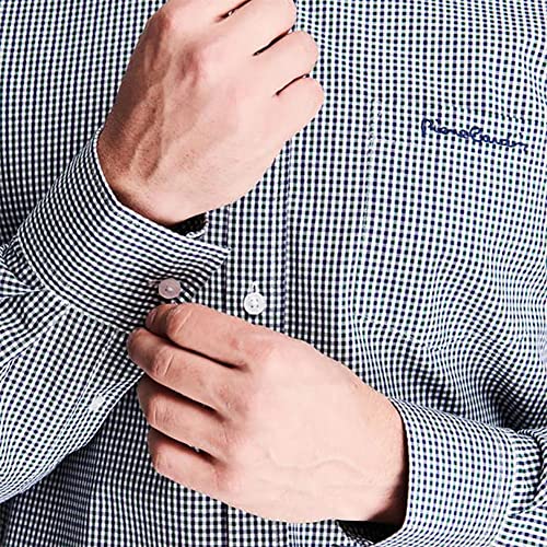 Guarda nitida in qualsiasi occasione con questa maglia a quadri di Pierre Cardin. La camicia presenta il caratteristico ricamo sul petto sinistro, tinto per abbinare bottoni e colletto fuso.