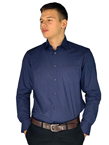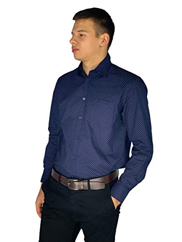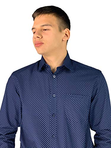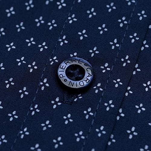 Pierre Cardin Uomo Camicia a Quadri o Stampata a Maniche Lunghe con Ricamo Esclusivo (Medium, Navy/White Geo)