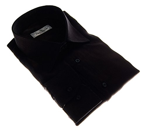Pierre Martin Camicia da uomo lucida di design, collo alto, a maniche lunghe, colore bianco, nero, blu, rosso, argento