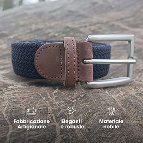 Pierrot Cintura Elastica Intrecciata per Uomo - Confortevole Cintura in Tessuto Elastico per Tutte Le Taglie - Finiture in pelle y Fibbie in acciaio senza nichel - Fabbricazione artigianale