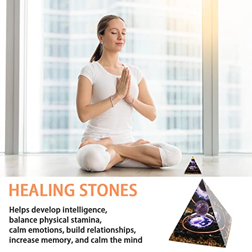 Pietra di Cristallo Piramide orgonica e tormalina nera Victop Piramide con pietre scheggiate di ossidiana nera, piramide con sfera di cristallo ametista e pietre curative (A)