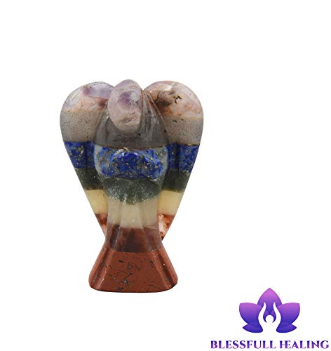 Pietra naturale multi sette chakra Reiki intagliato pietra preziosa spirituale guardiano tasca angelo statua ornamento decorazione "2 pollici circa -Blessfull Healing