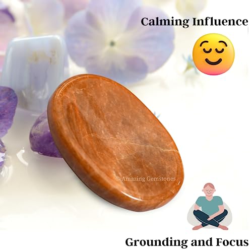Pietra di preoccupazione per il pollice per la guarigione del cristallo ~ Pietra cabochon ovale ~ Pietra palmare tascabile in cristallo naturale facile da trasportare (Peach Moonstone)