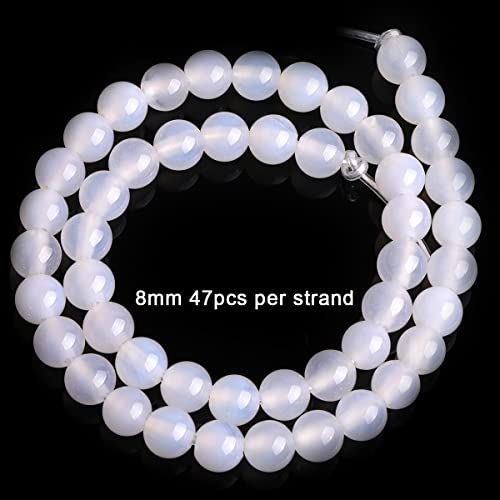 Pietra preziosa di agata bianca naturale semi preziosa rotonda 8 mm perline sciolte per la creazione di gioielli fai da te braccialetto collana artigianato 45 ''