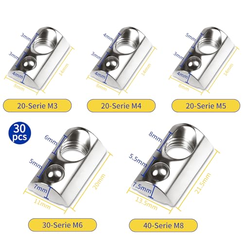 30 pietre scanalate M6 con scanalatura a sfera di centraggio, 8 T, set di viti 30 serie M6, profilo in alluminio 30 x 30, in acciaio al carbonio, dado scorrevole con sfera a molla per alluminio C, per