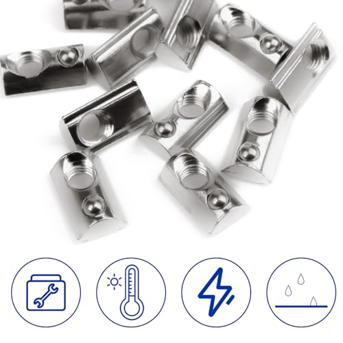 Facile da montare: posizionare il dado nella posizione appropriata nella scanalatura in alluminio. Allineare la vite sul foro del dado e inserirla. Stringere la vite con una chiave fino a quando il dado è stabile. Grazie al meccanismo a molla integrato, queste pietre scanalate possono essere facilmente inserite nei profili della scanalatura e tengono saldamente in posizione. Ciò consente di risparmiare tempo e fatica durante il montaggio e garantisce una connessione affidabile.