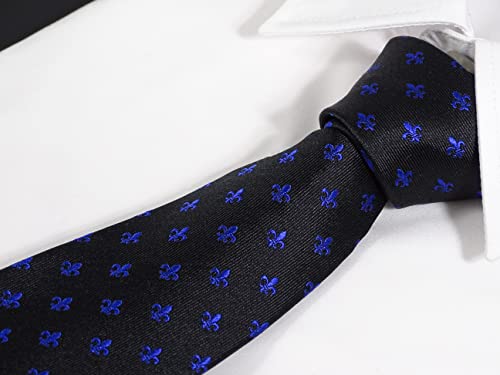 PB Pietro Baldini Cravatta Fleur de Lis 100% seta - Cravatte lusso per l'uomo nobile - Cravatte da uomo eleganti per le occasioni speciali - 150 x 8 cm - Nero Blu