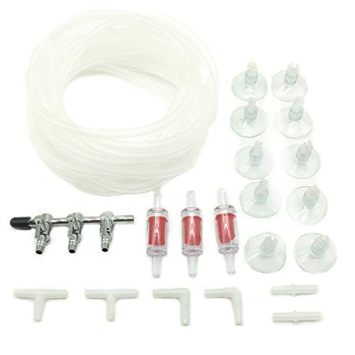 PietyPet 3-Modo valvola a Leva dell'acquario, 4m Tubo Ossigeno Acquario con 10 Ventose, 3 Valvola di Arresto e 6 Connettori per Acquario Pompe d'Aria