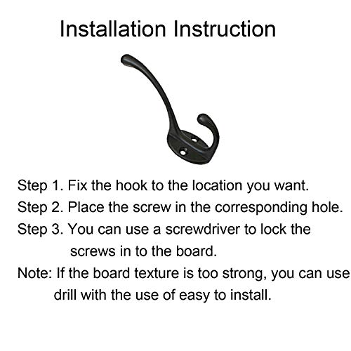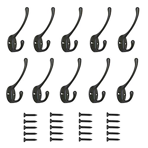 Quantità: 10 pezzi Nero Ganci Appendiabiti Grande Doppio e 20 pezzi viti di sostenere, un gancio per due viti, adatto ogni altri bene, abbastanza per lunga vita durata d'uso.