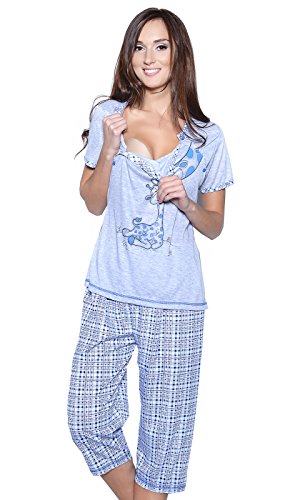 Mija - Pigiama 3 in 1 per allattamento / pigiama grigio / blu M
