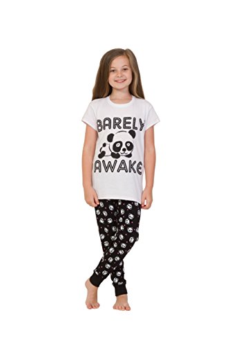 Pigiama da bambina con orso di panda sveglio, 9-16 anni. Top bianco a maniche lunghe con stampa più favolosa, cool. Pantaloni elasticizzati in coordinato con Panda. 100% cotone morbido. Sarebbe il regalo più favoloso per un simpatico fan del panda.
